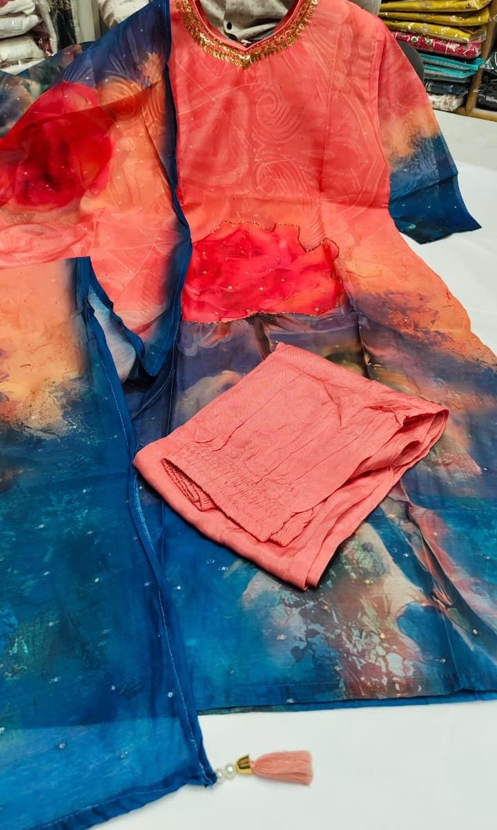 peach and navy -chanderi-3pcs set